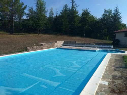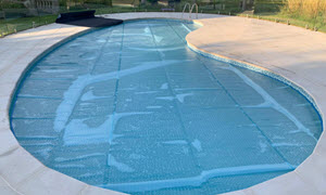 Latest Thermaquilt Azure swimming pool cover installed June2021.This outside pool has the benefits of wind restraints