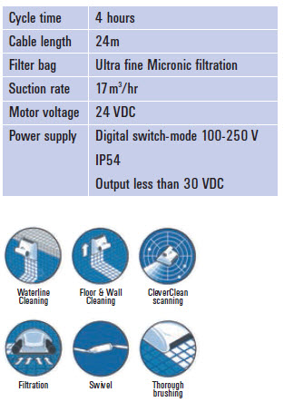 Dolphin Wave 50 benefits *Scrubs,brushes, vacuums and filters entire pool *Floor * Walls *waterline *Maximises pool coverage *Collects dirt and debris *Automatic shut off *Suitable for beach entry pools *Caddy for handling and storage *2 year Warranty *Pools upto 15m